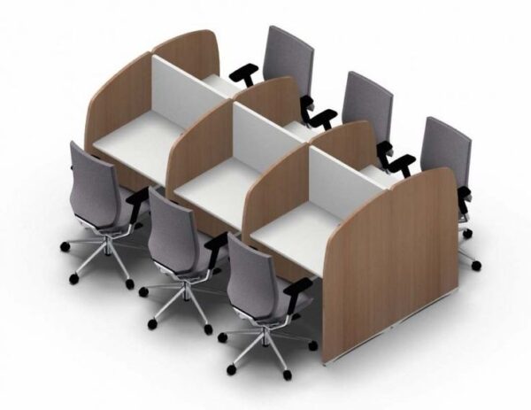 خليه عمل 4 فرد مقاس 320سم * 120سم مقاس الفرد140سم *60 سم مصنعه من خشب MDF الملصق قشرة صناعى عالية الجودة وجنب مثبته علي سايد جانبي عباره عن وحده مكونه من درج وضفه لكل فرد والجنب الاخر مثبت علي شاسيه معدني دهان الكتروستاتك مضاد للصدأ