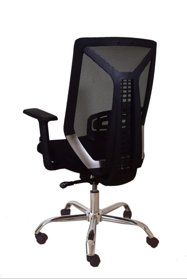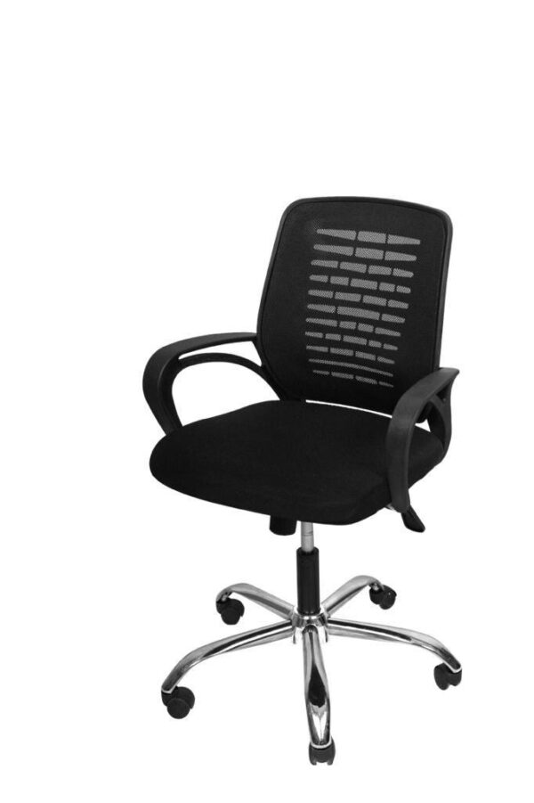 كرسي شبك ظهر عالي القاعدة تنجيد اسفنج عالى الكثافة ومكسوة بطبقة من القماش عالى الجودة واليدات ثابته ومصنوعه من الفيبر والكرسي مزود بنجمة من المعدن ومزود بهيدروليك وميكانيزم