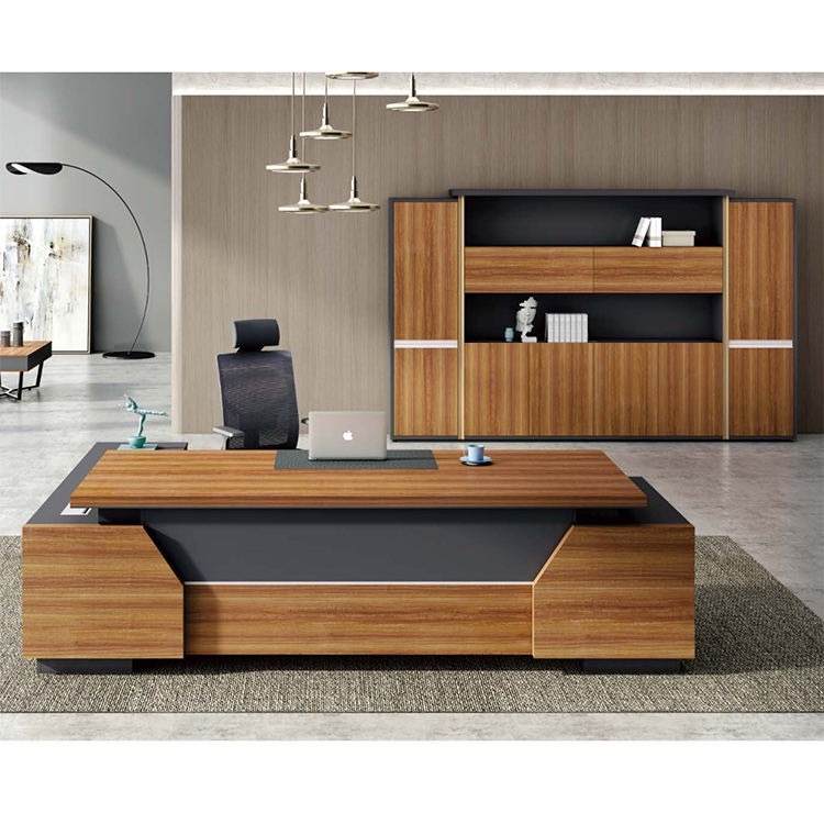 مكتب مدير مقاس 200سم مصنع من الخشب mdf روماني وملصق قشرةصناعي ومزود بقشاط من الاستانلس مقاوم للخدش والاحتكاك سمك القرصة 25 ملي وسمك الاجناب 34 مملي مزود بسايد مقاس 160 سم مكون من 3 درج 2 ضلفه